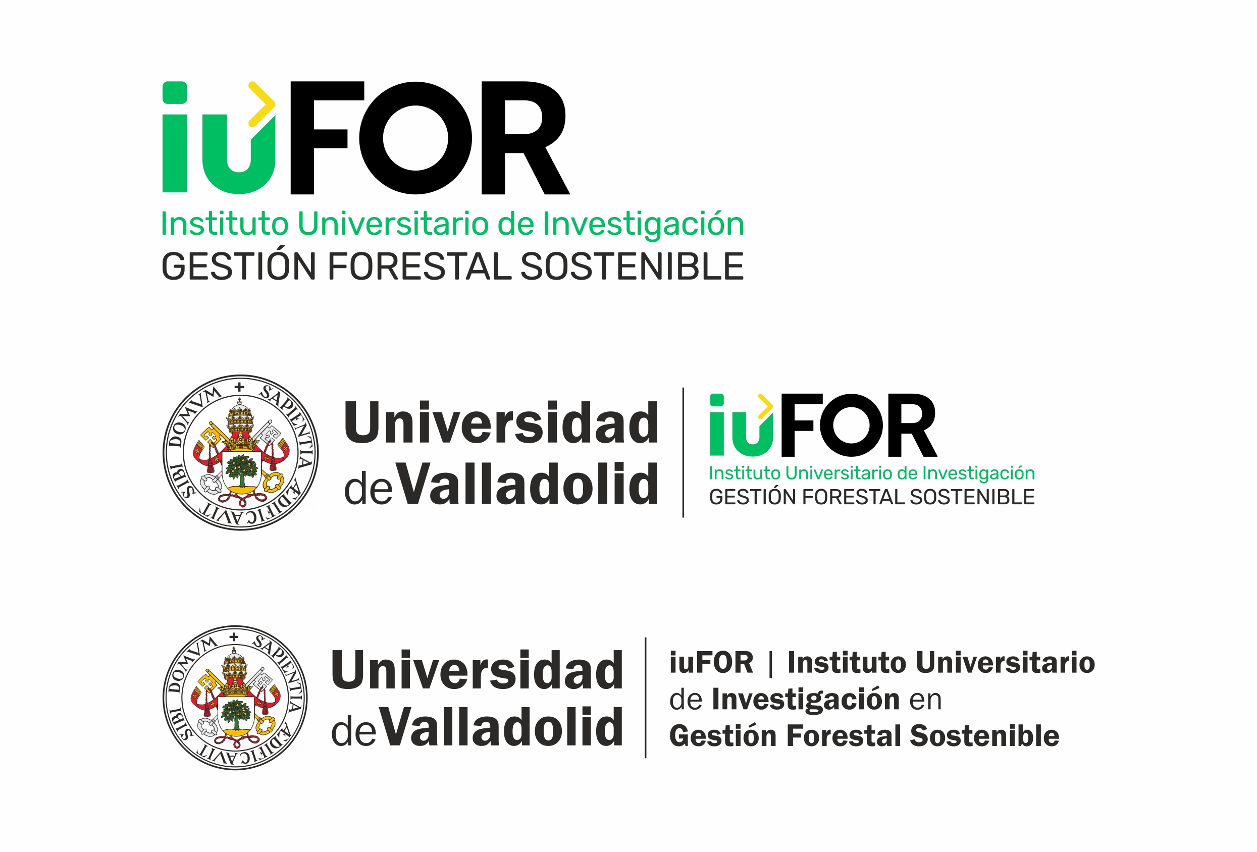 – Versión 2: Marca UVa + Denominación de iuFOR como entidad perteneciente a la Universidad de Valladolid (Según normativa de Identidad Corporativa UVa)